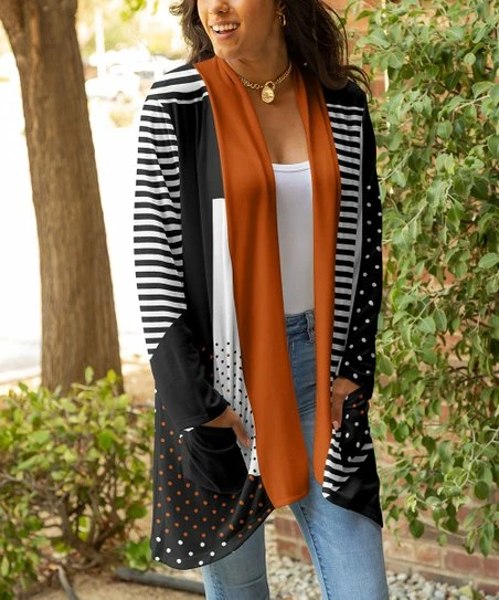 Layer your look with this printed cardigan designed with an open front and pockets.