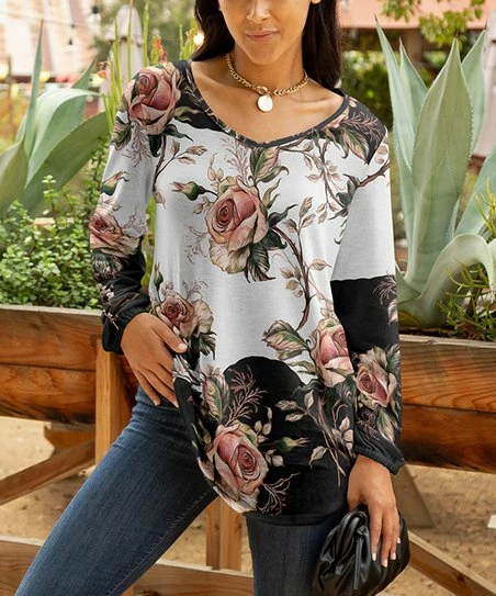 Relaxed tunic featuring long sleeves to keep you covered and a flattering v-neckline.
