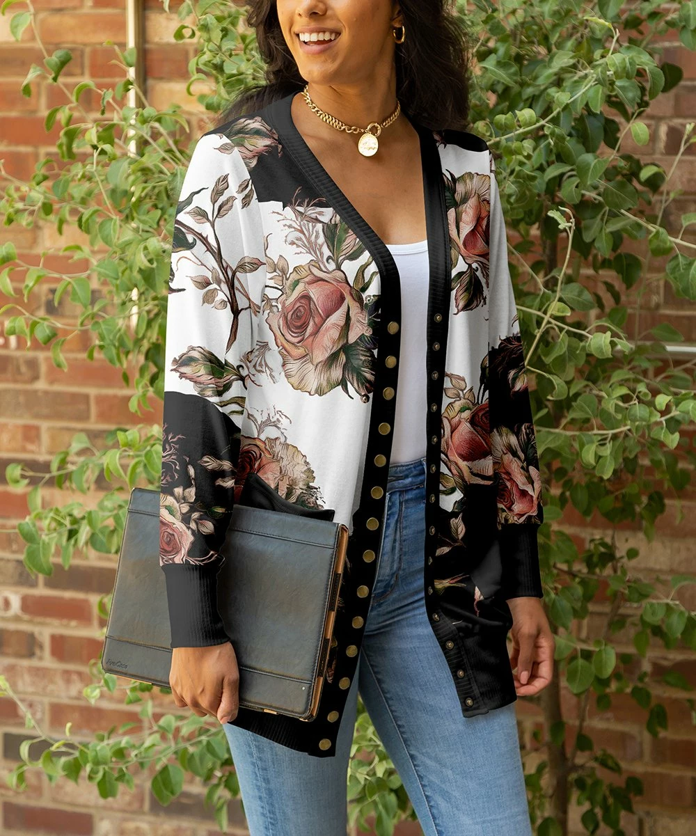 Complete your outfit with this cozy cardigan boasting a bold statement pattern and poised snap buttons along the front. A hint of stretch ensures comfort as you layer it over your look.