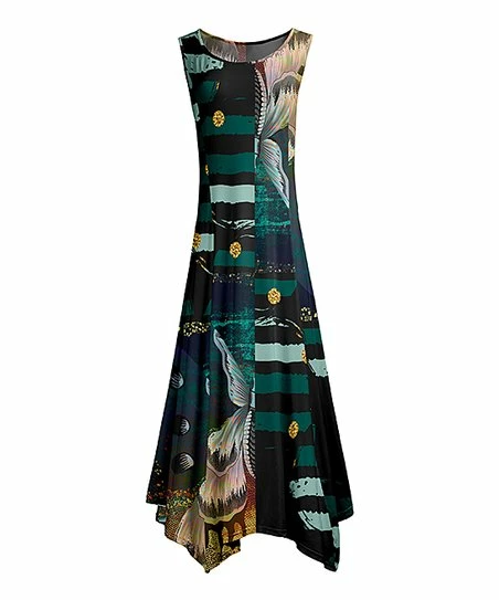 Turn heads as you sweep through the room in this graceful maxi dress flaunting a bold pattern. Stretch-blend material makes it a comfy pick and the sleeveless cut keeps it feeling fresh.