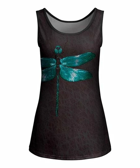 Lily | Black & Turquoise Dragonfly Boatneck Tank – Plus