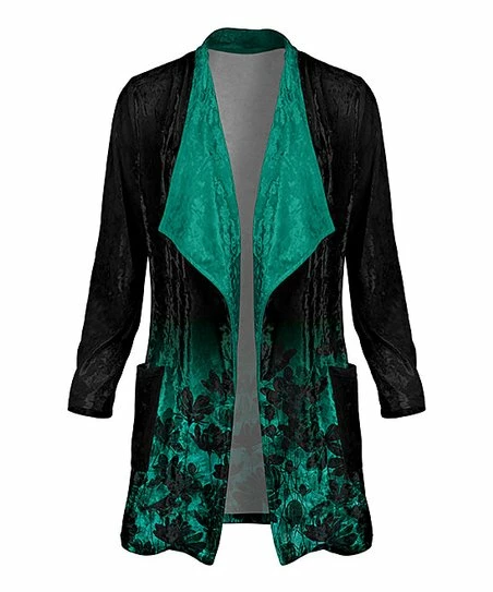 Add an elegant layer by wearing this velvet open jacket featuring side pockets and a blooming pattern.