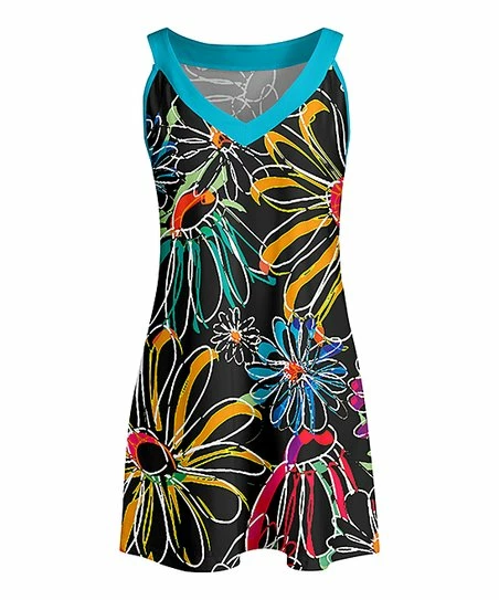 Fresh and cool, this tunic creates a dramatic impression with a lovely v-neck yoke that forms the basis of the flowy sleeveless cut.