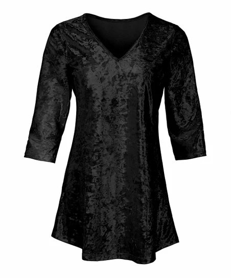 Update your ensemble with this classic tunic featuring crushed velvet, three-quarter sleeves and an airy fit for a modern touch.