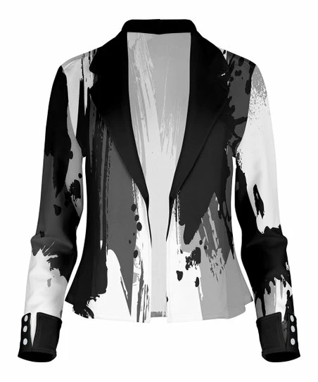 Spruce up a look with this lightweight open blazer featuring a contrast lapel and bold print.