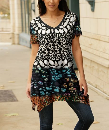 Bring a breezy vibe to your everyday casualwear via this playfully printed short-sleeved tunic styled with a flowy silhouette.