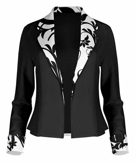 Step up your professional apparel with this open-front blazer made from stretchy fabric in an eye-catching print.