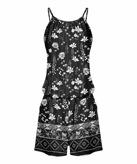Get set for sunny weather with this breezy sleeveless romper boasting a blouson-style bodice and loose-fitting legs.