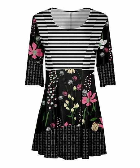 Breeze through busy days in this three-quarter sleeve tunic crafted with ultrastretchy fabric and an airy fit. Its statement print is sure to catch attention.