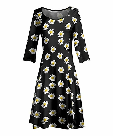 Make a statement in this swingy A-line dress designed with a boatneck, three-quarter sleeves and a vibrant print.