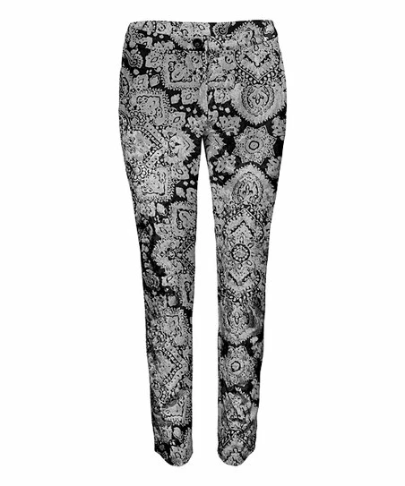 Add a pop of print to your casual basics with this lightweight pair of pants boasting a stretch-enhanced fit for comfort.
