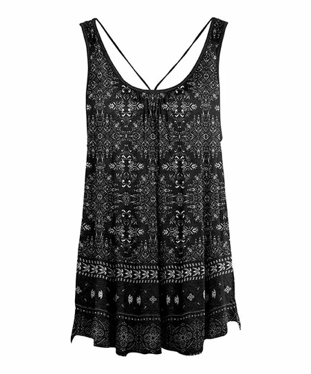This sleeveless tunic is designed with pleated details and an allover print.