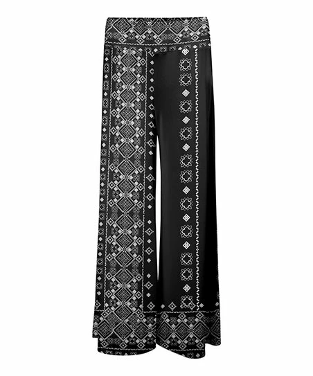 Freshen your wardrobe with this pair flowy palazzo pants designed with a geometric pattern for a boho-chic look.