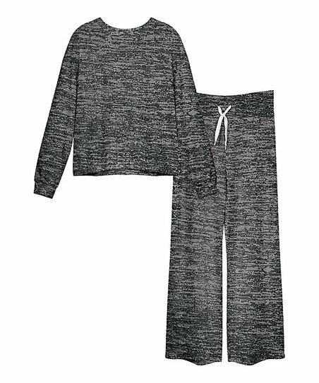 Settle into the dreamy comfort of this lounge-ready set featuring a relaxed, long-sleeve top and drawstring pants in a matching print.