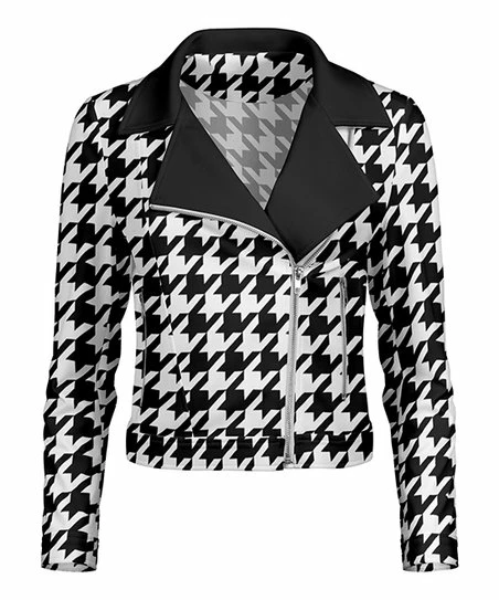 Instantly take your ensembles to the next level when you add this moto-style jacket designed with a statement-making print and side zip pockets.