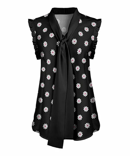 With ruffled short sleeves, a stylish tie-neck design and comfortable stretch-infused fabric, this tunic is a casual wardrobe essential.