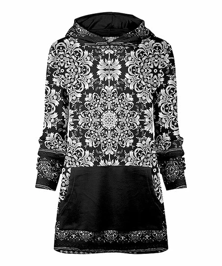 Elevate your everyday casual outfits with this long hoodie sporting a jazzy print and generous front pocket for chilly hands or those little essentials.
