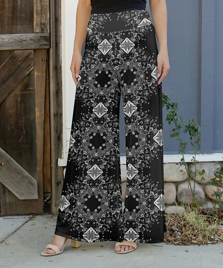 Stand out in these flowy palazzo pants featuring stretch-blend material and a bold pattern.