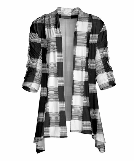 Craft a sophisticated layered look when you slip on this contemporary open cardigan boasting lightweight, stretch-infused fabric and three-quarter sleeves for just the right amount of coverage.