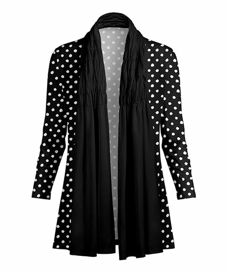 Lily | Black & White Polka Dot Drape-Front Open Cardigan – Women & Plus