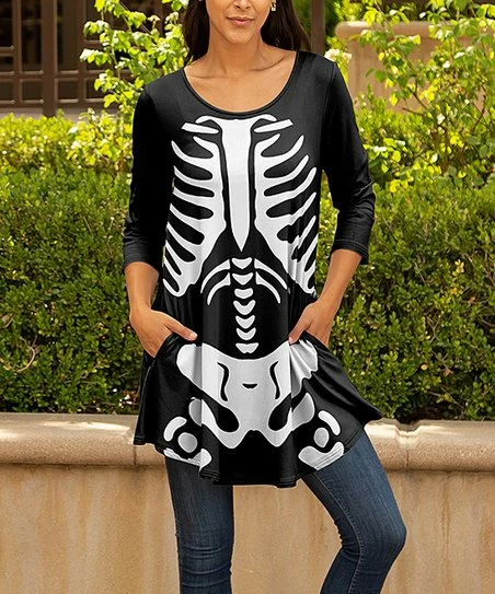 This boldly printed tunic features a comfortable three-quarter sleeve, a scoop neckline and enough stretch for all-day wear.