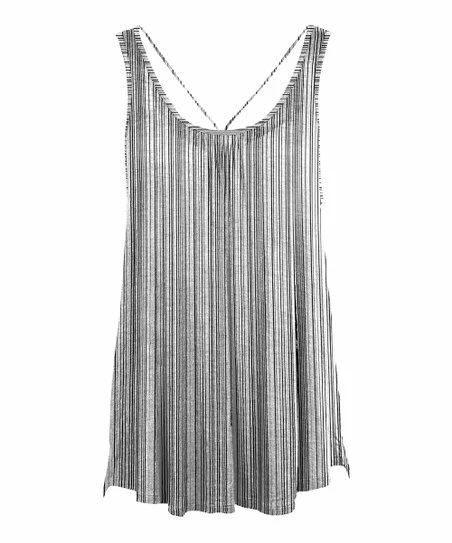 Featuring a drapey, breezy fit, crisscross-back straps and a lively pattern, this sleeveless tunic brings feminine flair and flirtatious style to your ensemble.