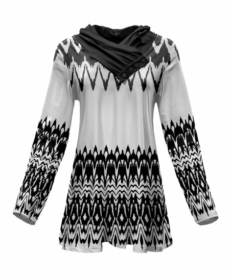 A vibrant print lends eye-catching appeal to this long-sleeved tunic charmed with button accents on its wrap-style neckline. Soft and stretchy material keeps you comfy throughout your busy day.