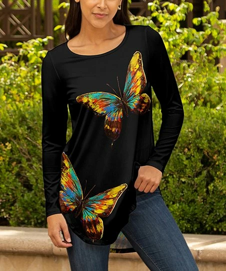 The long sleeves of this patterned tunic keep you covered while stretch-enhanced material offers a flexible fit.
