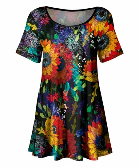 Lily | Black & Yellow Floral Scoop Neck Tunic – Plus