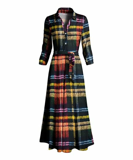 Craft your easygoing ensembles with the effortless look of this peppy plaid shirt dress fashioned for full-length coverage with its billowy A-line skirt and long sleeves.
