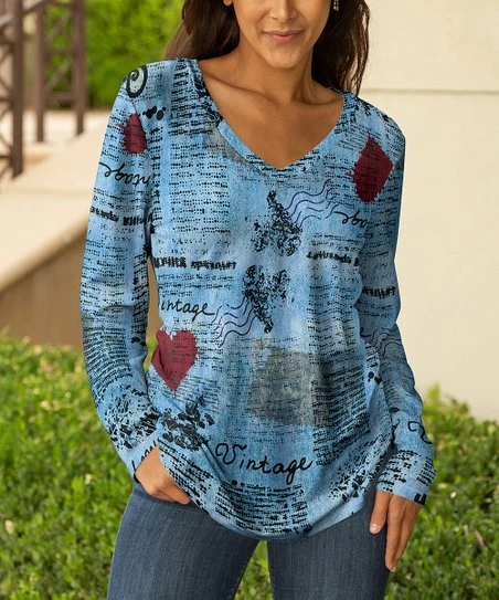 This tunic features a classic v-neck, a bold print and a hint of stretch.