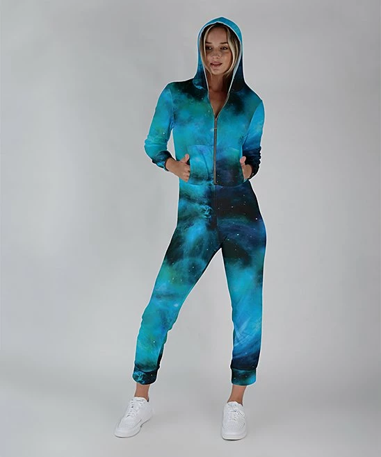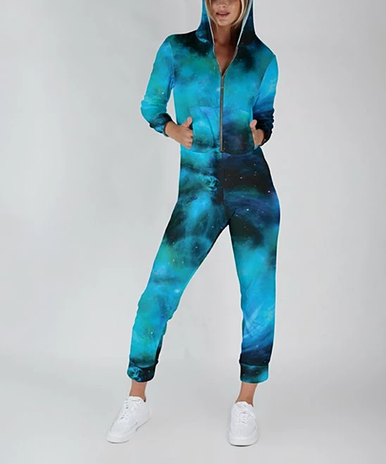 Kick back and relax in casual-cool comfort with this one-and-done jumpsuit, made with an easy-on zip closure and cozy hood design. A hint of stretch ensures a free-to-move fit.