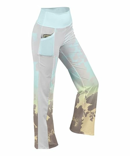 Stretch-friendly yoga pants sporting a light abstract pattern and handy pockets.