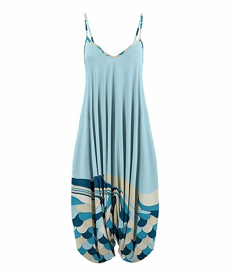 Express your inner bohemian when you wear this roomy sleeveless jumpsuit embellished with a vibrant print and a generous v-neckline to host your favorite necklace.