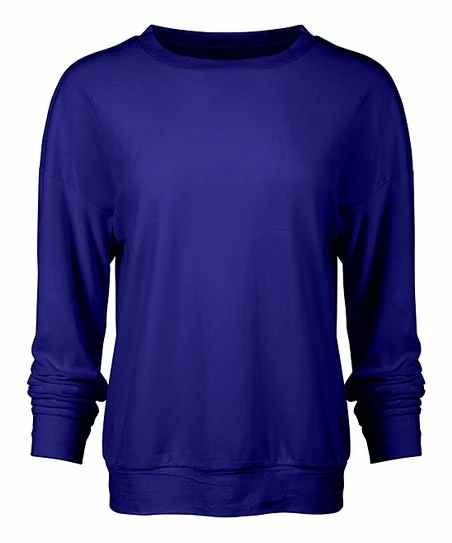 Dress for endless style and comfort in this stretchy long-sleeve top, featuring both an appealing crewneck cut and solid blue color that suit a plethora of trendy outfit combinations.