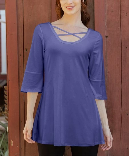 Lily | Blue Crisscross-Accent Trumpet-Sleeve Tunic – Women & Plus