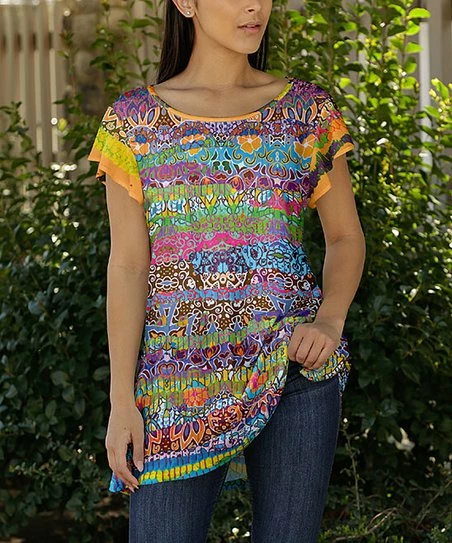 Charming flutter sleeves and a colorful print complete the look of this tunic that can freshen up your casual wardrobe.