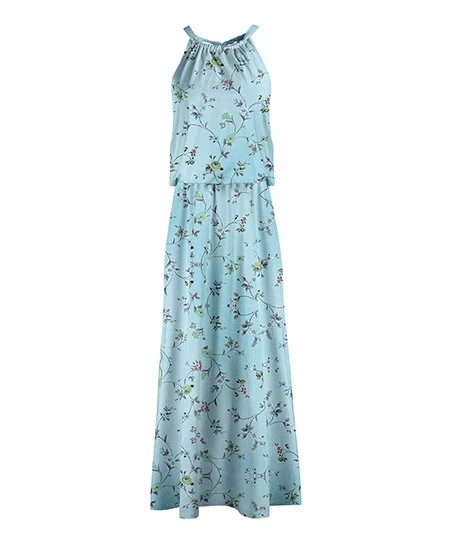 Featuring a flowy blouson bodice and an elastic waist, this maxi dress offers a relaxed fit. Gathered halter neck and stretch fabric.