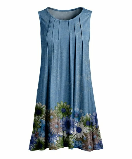 A splash of color in a bold print adds excitement to this cool charmer. A pleated neckline plays out in a flowy finish that works well with the sleeveless cut.