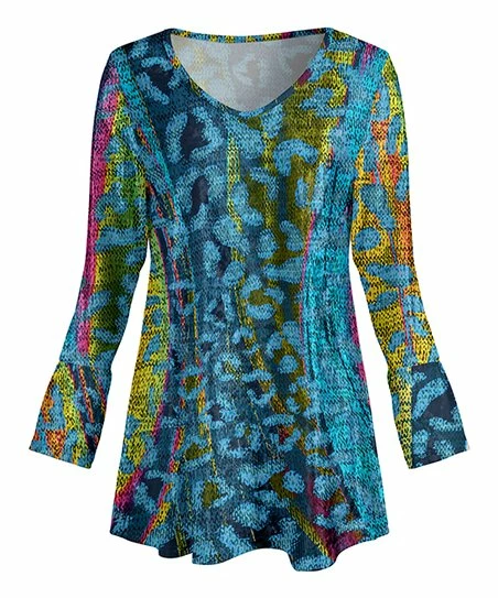Effortlessly elevate your ensembles with this velvet tunic that features a statement-making print and subtle bell-sleeve cuffs.