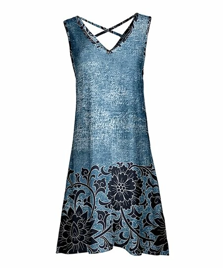 A sleeveless cut and a strappy detail make a polished pairing in this breezy dress decorated with a perky print.