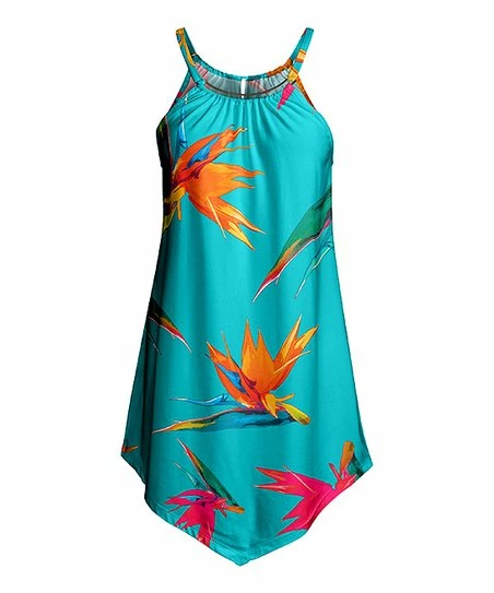 Embellished with a vibrant print, this breezy tunic keeps you cool and comfy in sunny-day style with its sleeveless design and a flowing fit that forms a pointed hemline.
