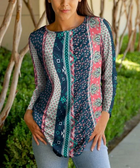 Casual, easygoing tunic with a colorful geometric design.