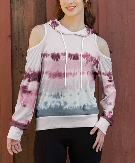 Daring shoulder cutouts give this lightweight knit hoodie an added dose of pizzazz.