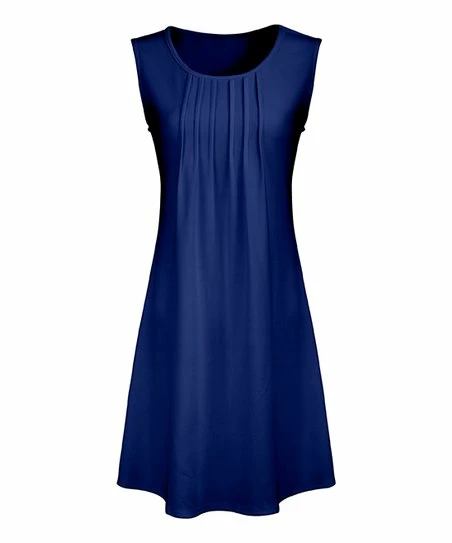 Add a fasion-forward look to your collection with this charming dress boasting vertical pleating along the neckline while stretch-enhanced fabric gives you all-day comfort.