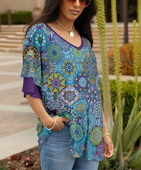 Double your pleasure in this wonderful tunic with a layered flutter-sleeve that echoes the airy hemline. Not only is the fit comfortable and flattering, the print is dynamic.