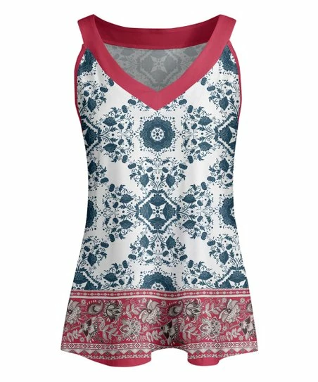 Comfy stretch fabric with a bold print makes this tank a stylish staple.