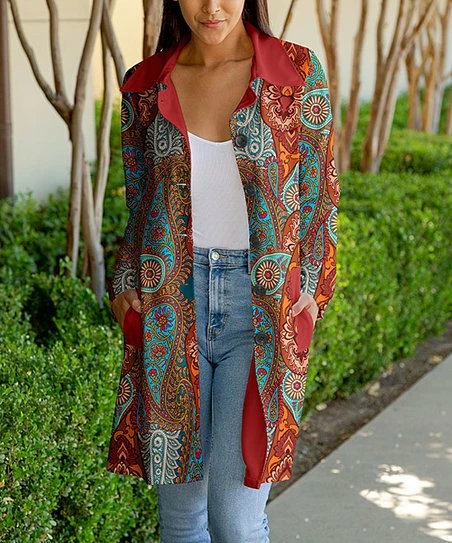 Combining bold print with classic button-up styling, this lightweight coat lifts outfits out of the everyday with polish and pattern.