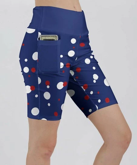 Colorful bike shorts featuring a handy pocket that fits phones.