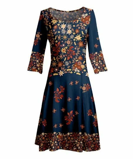 Enliven your everyday dress collection with this casual stretch-blend number flaunting a relaxed A-line silhouette with a wide scoop neckline and graceful three-quarter sleeves.